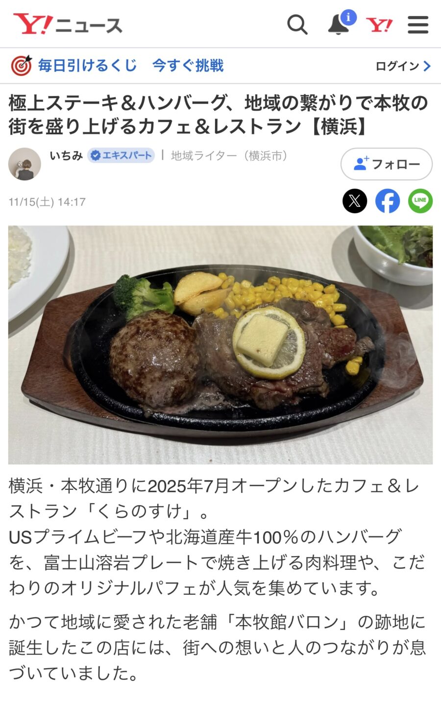 この度、「カフェ&レストラン くらのすけ」が、Yahoo!ニュース(つつじろぐ様の記事)にてご紹介いただきました👏🧡