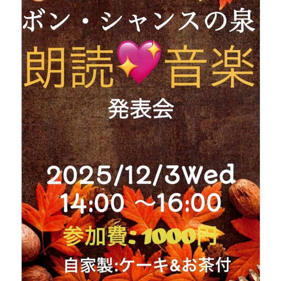 「ボン・シャンスの泉 朗読・音楽 発表会」が開催されます📢