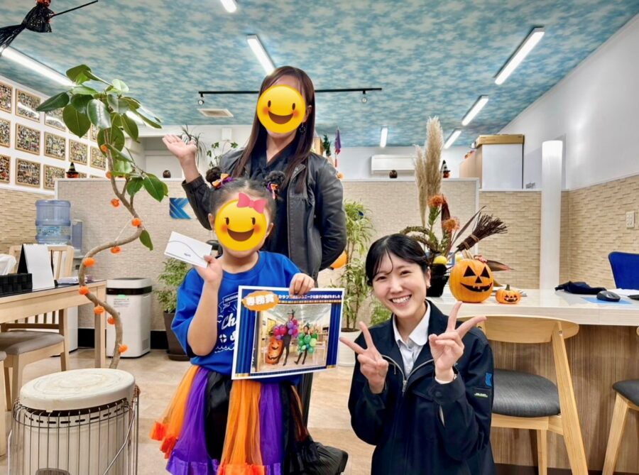 ハロウィンフォトコンテストの投稿でご紹介した「専務賞」に輝いた女の子とお母様。
