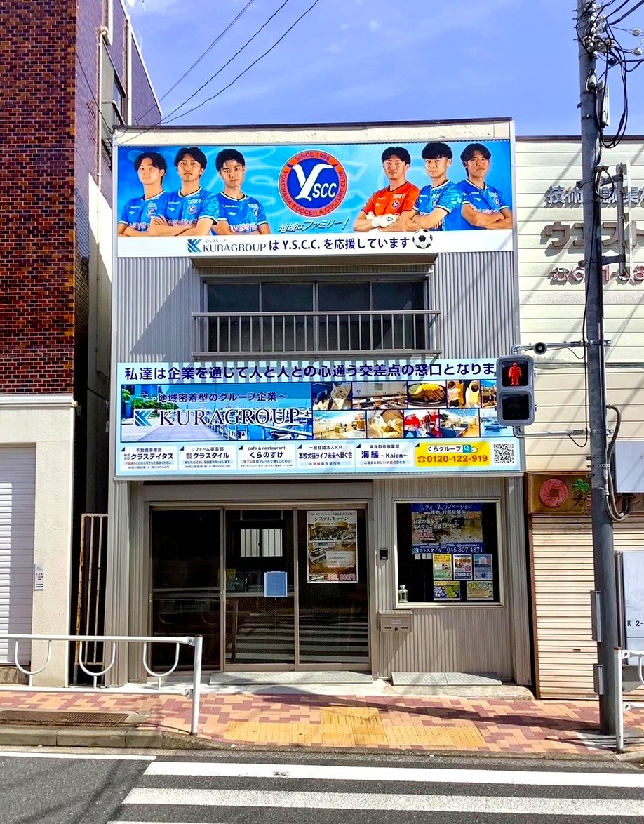 建物上部にくらグループの大きな看板を設置しております🪧✨