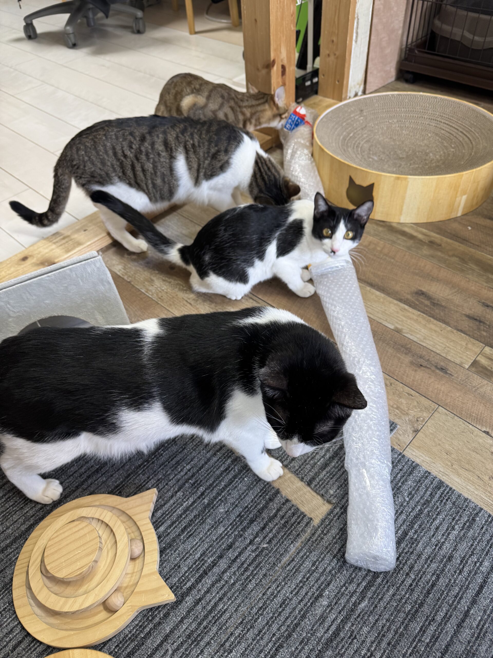プチプチや袋など新しいものが入ると、みんなで興味津々に集まる様子も見られ、