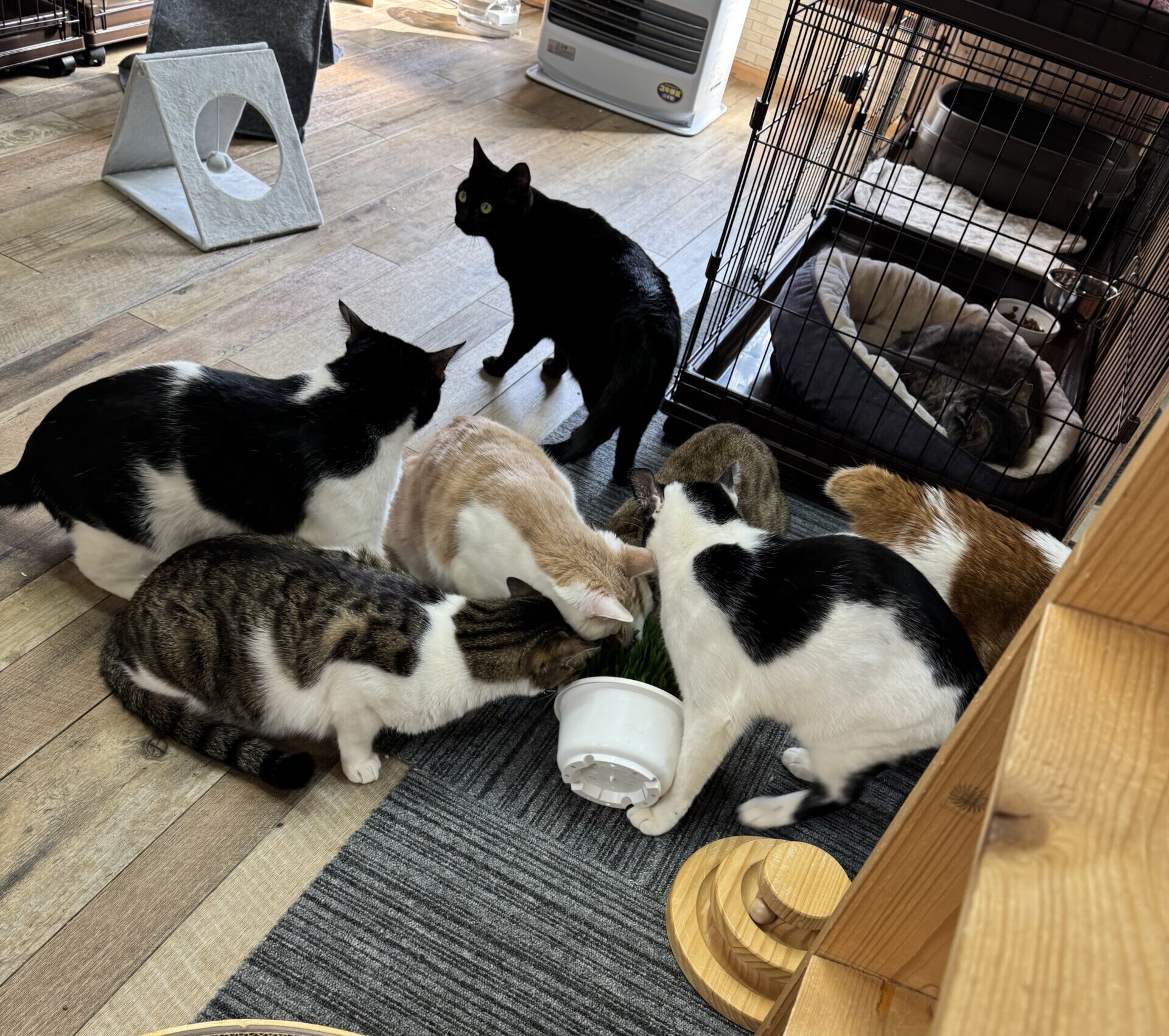 中でも、猫草には特にみんな夢中で、取り合いになるほどの人気ぶり✨